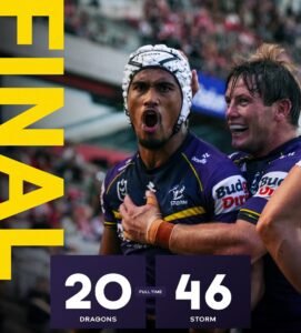 Melbourne’s start to 2026 has been nothing short of dominant. They thrashed Parramatta Eels 52-4 in round 1, posting an 85% completion rate and 86.2% tackle efficiency. Round 2 brought another statement win—46-20 over St George Illawarra Dragons—with the attack averaging 49 points per game in the opening fortnight.